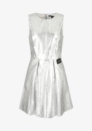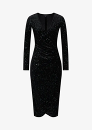 ウィメンズのメタリックな煌めきが美しいスパンコールがあしらわれたブラックベルベットのワンピースや、メタリックな艶感が目を惹くフレアワンピース、スパンコールのミニバッグ、メンズの細目のラペルとタイト目なシルエットがススタイリッシュなテーラードジャケットやジャケットにマッチするクールな質感が特徴のステンレススティールブレスレットとウォッチはパーティーシーンにぴったりです。