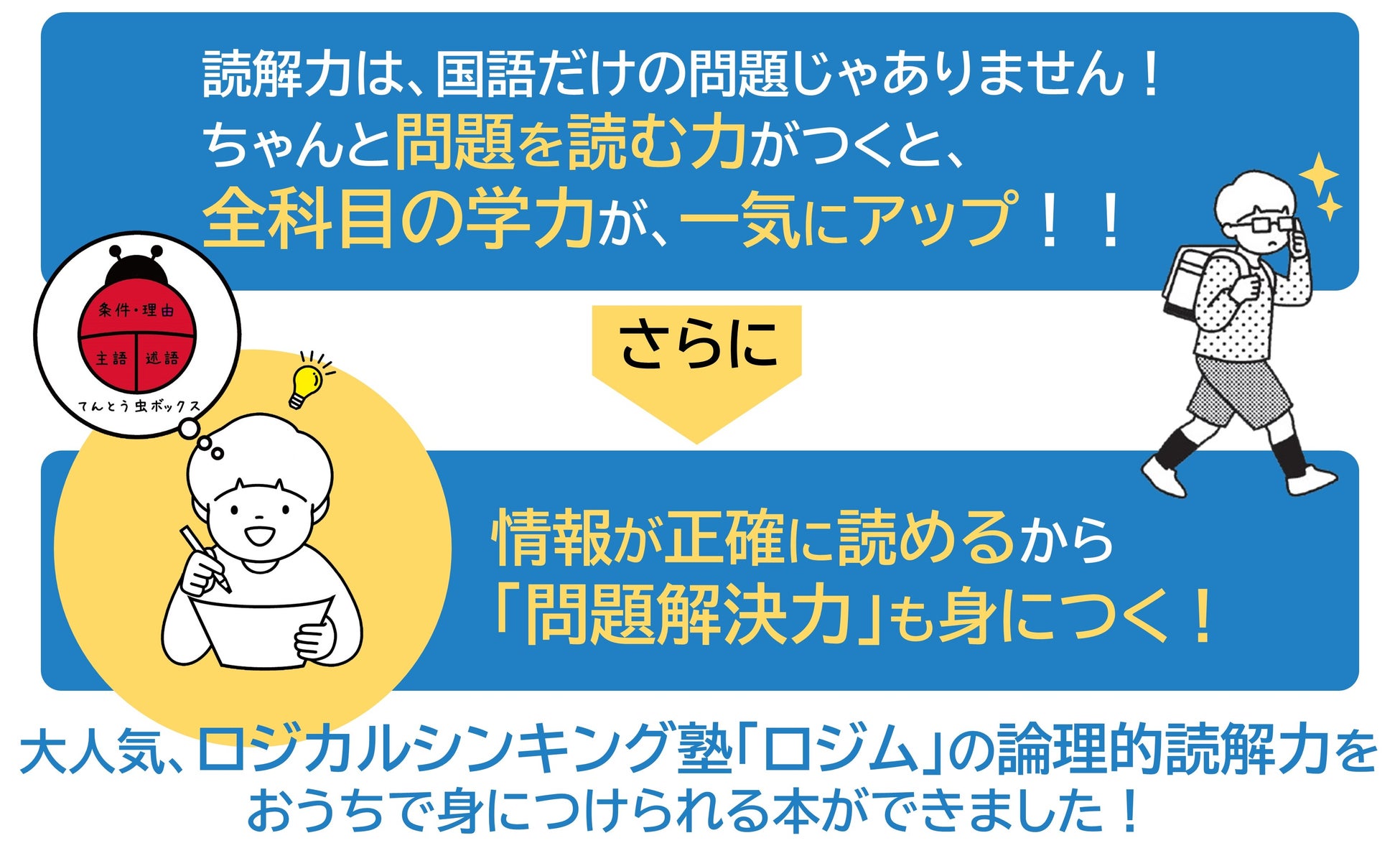 論理的思考力を身に付ける大人気の塾「ロジム」の授業をもとにした「読める力」がつく本。論理的読解力が、国語・算数・理科・社会、すべての教科の学力を上げます!