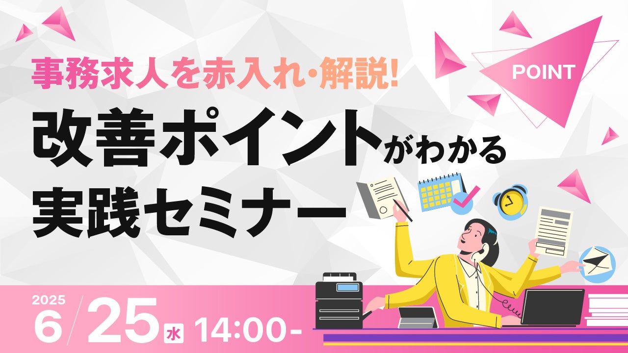 そんな企業様の声にお応えし、事務職向け求人原稿の改善ポイントを解説するサポートセミナーを開催します。