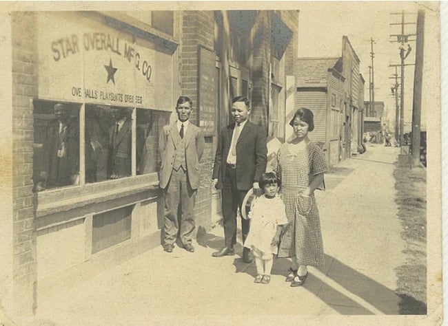 当時の作業服はまだ日本には無く、現在では若者にも人気のあるデニムのオーバーオールでした。1923年(大正12年)ロサンゼルスにてスターオーバーオールカンパニーを設立。