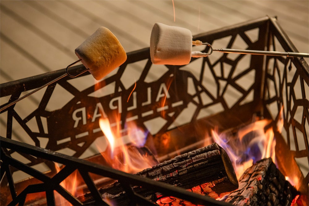 宿泊予約画面提示にて、Fビレッジ内にあるグランピング施設(BALLPARK TAKIBI TERRACE ALLPAR)にて焚き火体験をお楽しみいただけます。