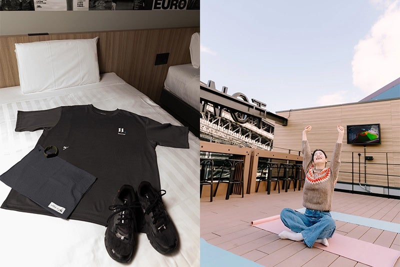 プロ野球シーズン中限定でオープンしているルーフトップを、コンセプトルーム宿泊者限定で開放。設置されたヨガマットを使用して、ご自由にストレッチや瞑想をしていただけます。