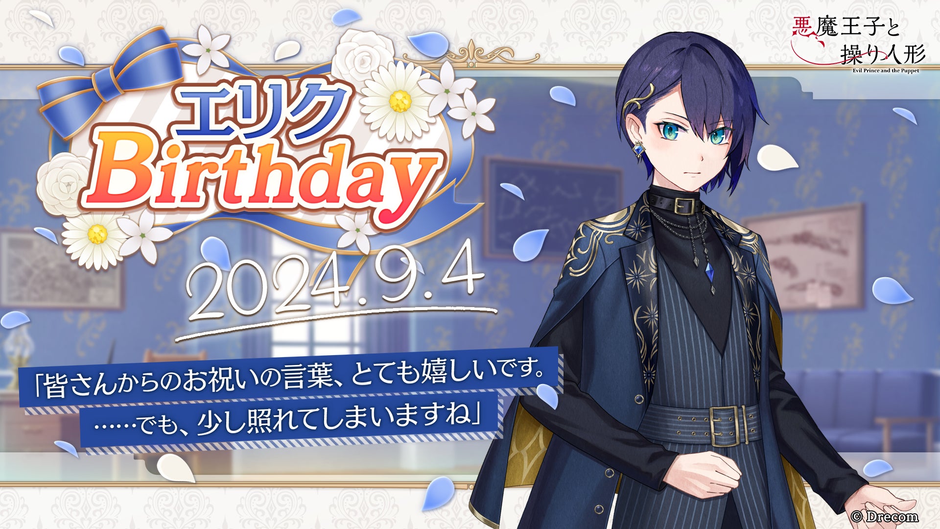 株式会社ドリコム(本社:東京都品川区、代表取締役社長:内藤裕紀、以下ドリコム)は、本日2024年9月4日(水)より、弔花者と呪いを癒すダークファンタジーADV『悪魔王子と操り人形(あくあや)』にて、憂世の志士「エリク」の誕生日(9月4日)を記念し、期間限定「エリクBirthdayキャンペーン」を開催いたします。