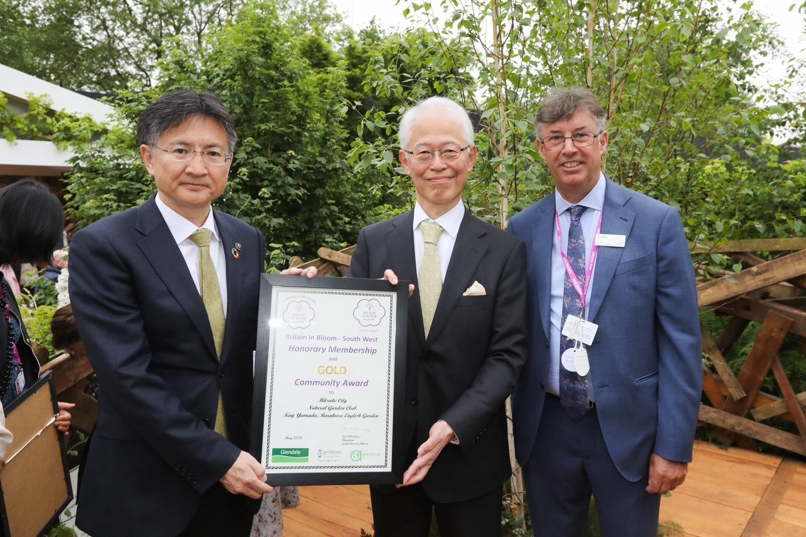 「みつけイングリッシュガーデン」を運営する見附市、市民ボランティア団体「ナチュラルガーデンク ラブ」、監修者で英国園芸研究の第一人者のケイ山田氏が、英国最大の園芸競技会「ブリテンインブルー ム」で、英国外で初となる「ゴールドコミュニティ賞」を受賞しました!