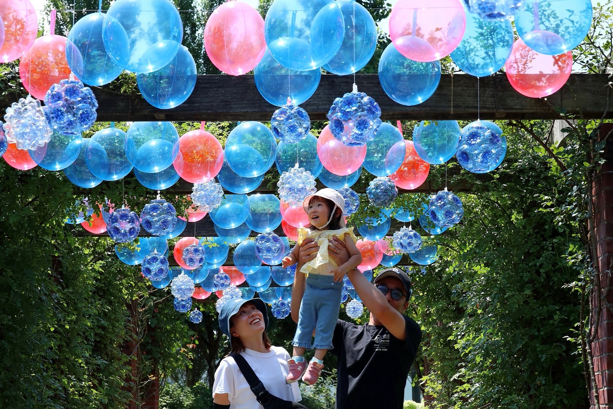 新潟県見附市のみつけイングリッシュガーデンでは、7 月 13 日(土)~8 月 25 日(日)にかけて、「サマ ーディスプレイ in みつけイングリッシュガーデン」を開催します。まるでシャボン玉のような透明な バルーンやカラフルなアンブレラ、ガーデン職員が手作りしたキラキラ光るサンキャッチャーなどでガ ーデンが華やかに彩られ、まさに夢のような景色が広がっています。美しく鮮やかなフォトスポットで 思い出に残る写真を撮影しましょう!