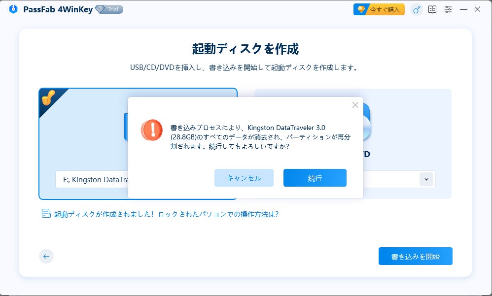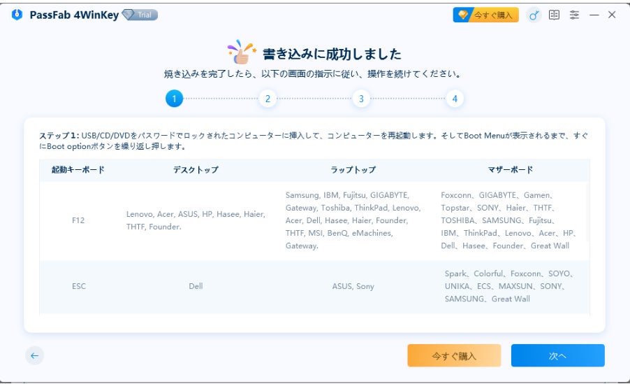 Step3:起動ディスクの作成が完了したら、パスワードを解除したいパソコンに挿入し、ガイドを見ながら操作します。