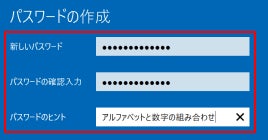 Step4:新しいパスワードとパスワードのヒントを入力して「次へ」をクリックします。パスワードの作成が終わりますので、「完了」をクリックして画面を閉じます。