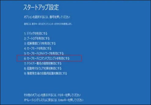 Step3:「6」または「F6」キーを押して「セーフモードとコマンドプロンプトを有効にする」を選びます。
