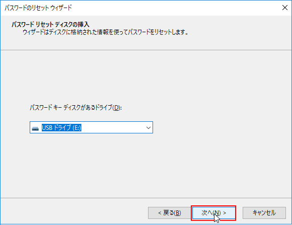 Step5:リセットディスクのドライブを選択して「次へ」をクリックします。