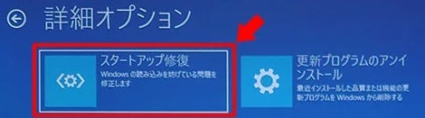 Step2:「トラブルシューティング」から「詳細オプション」と進み、「スタートアップ修復」をクリックします。