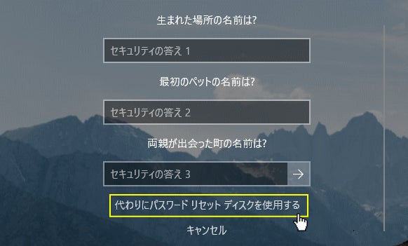 Step3:「代わりにパスワードリセットディスクを使用する」をクリックします。