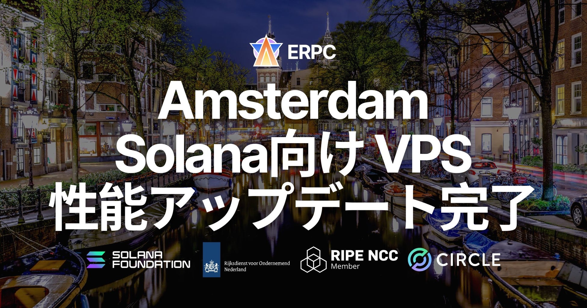 ELSOUL LABO B.V.(本社:オランダ・アムステルダム、代表取締役CEO:川崎文武)と Validators DAO が運営する ERPC は、アムステルダムリージョンにおいて実施していた Solana 用途向け VPS 製品群の性能アップデートが完了したことを発表しました。