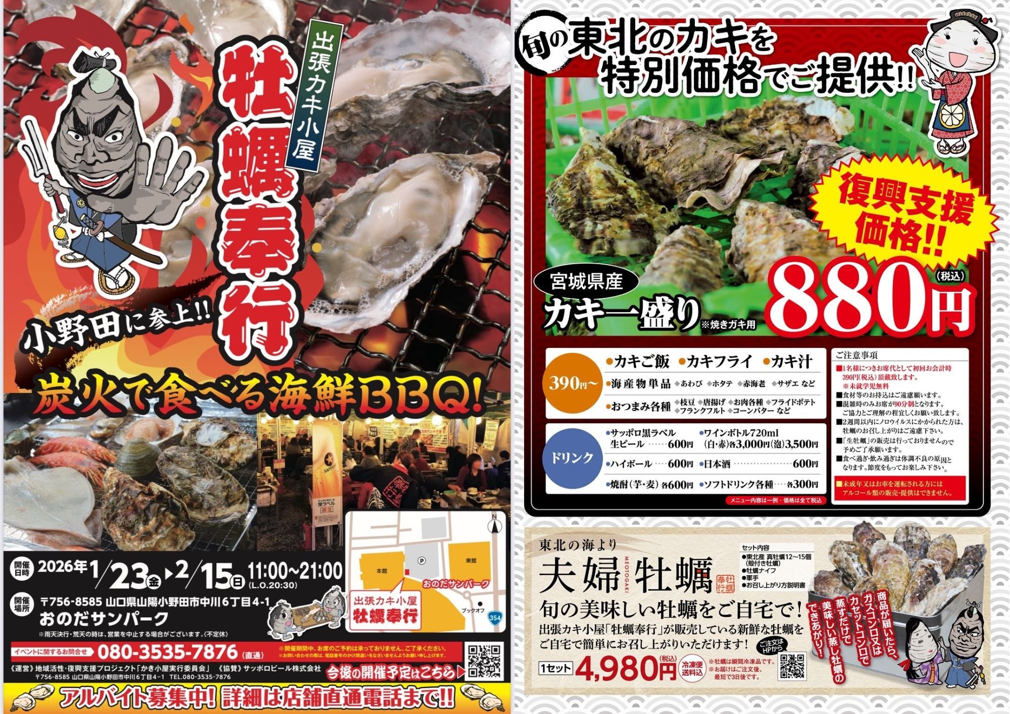山口県小野田に「出張カキ小屋」好評開催中!宮城県産殻付き牡蠣が《一盛り880円!! 》
