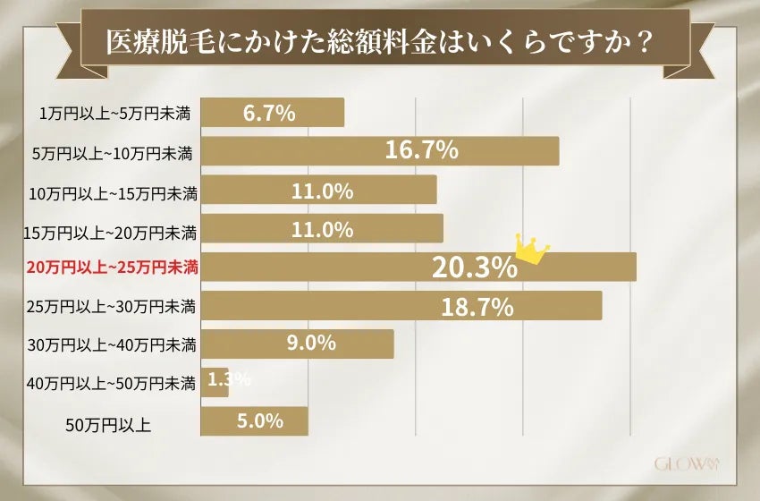 医療脱毛に「20~25万円」程かけている人が最も多く、全体の20%