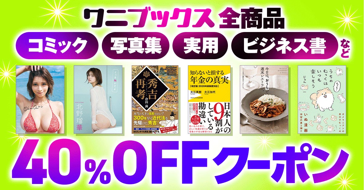 株式会社ワニブックス(東京都渋谷区、代表取締役:髙橋明男)は、ハイブリッド型総合書店「honto」にて2026年2月6日(金)~2月19日(木)までの2週間、対象の電子書籍が期間限定40%OFFで購入できるクーポンキャンペーンを実施いたします。