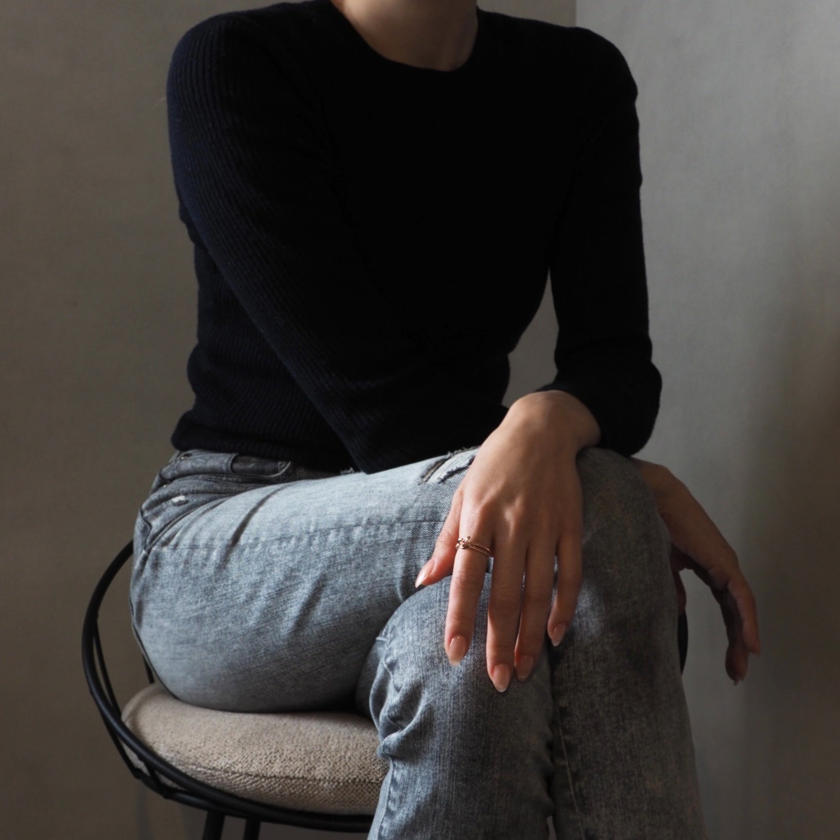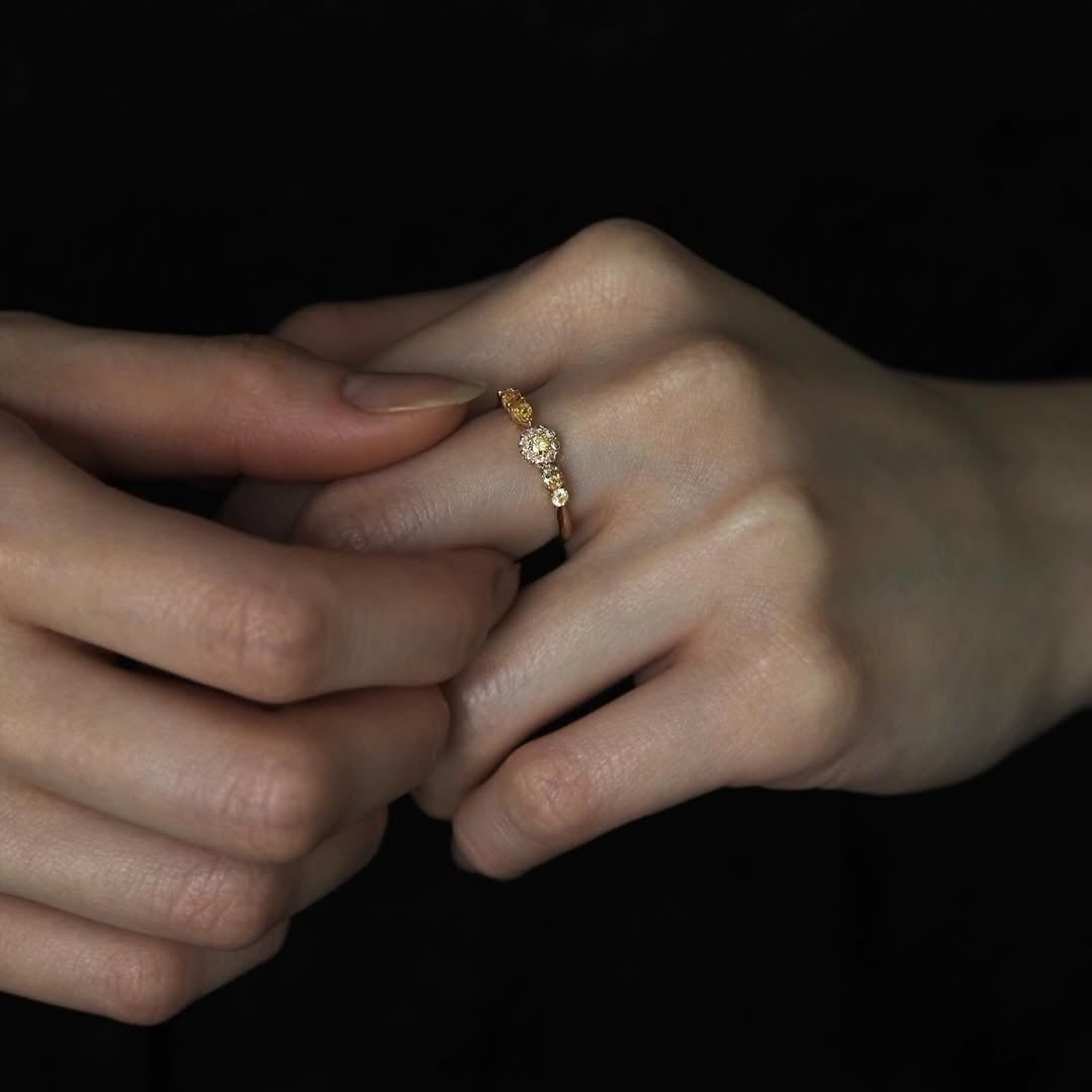 細身のアームに5ピースの宝石を端正に配したLuce。すっきりとした佇まいのなかに、それぞれの色が軽やかなリズムを奏でるリングです。