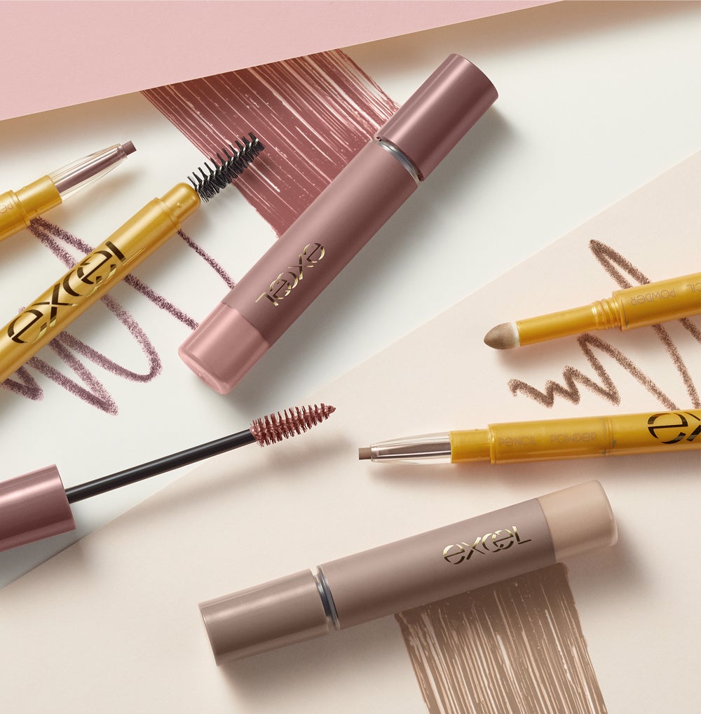 また3機能一体型アイブロウ「エクセル パウダー&ペンシル アイブロウEX」の限定色「PD16(アッシュピンク)」「PD17(ロイヤルベージュ)」も同日発売。2品の合わせ使いで、簡単にトレンドのカラー眉が完成します。