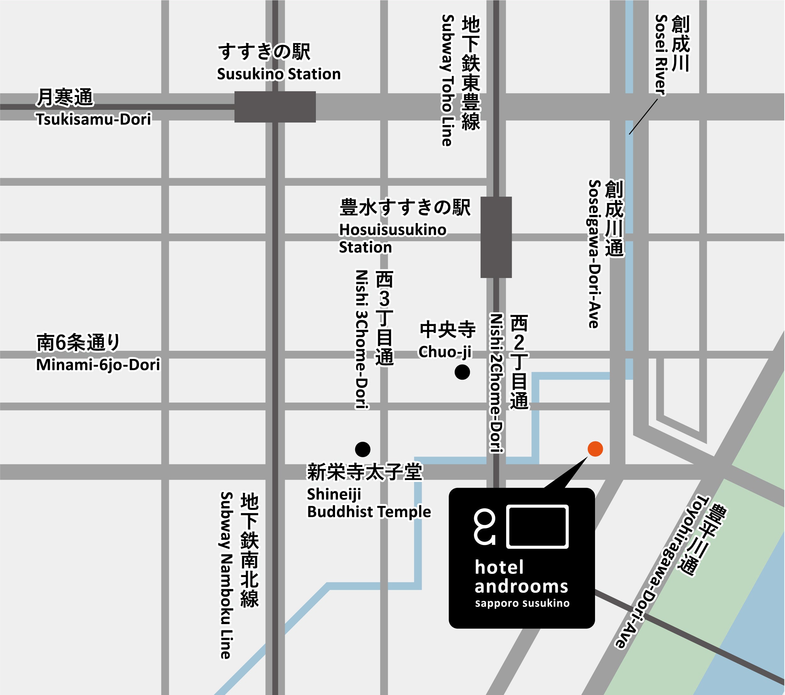 交通アクセス:札幌市営地下鉄東豊線「豊水すすきの駅」から徒歩3分、札幌市営地下鉄南北線「すすきの駅」から徒歩9分