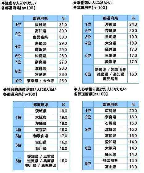◆謙虚な人になりたい 1位「長野県」、辛抱強い人になりたい 1位「沖縄県」