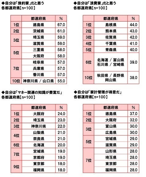 ◆“倹約家”1位は「徳島県」、“浪費家”1位は「島根県」