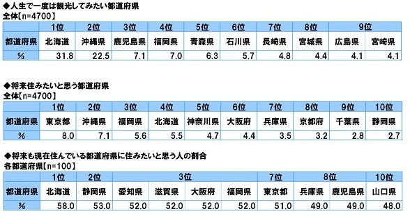 【47都道府県 観光してみたい都道府県・住みたい都道府県ランキング】