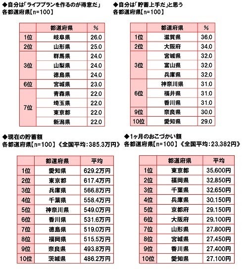 ◆“ライフプラン作りが得意”1位は「岐阜県」、“貯蓄上手”1位は「滋賀県」