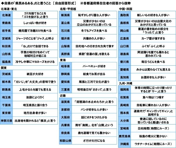 各都道府県の在住者(各都道府県100 名)に、自県の“県民あるある”だと思うことを聞きました。