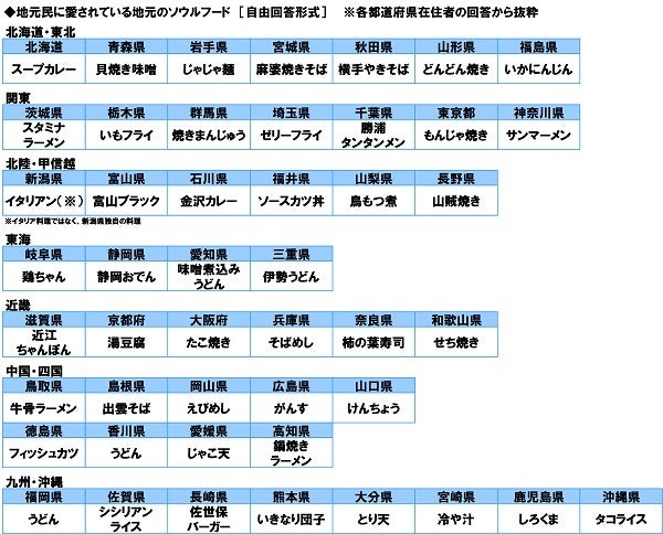 そのほか、各都道府県の特徴的な回答をみると、鳥取県では「スタミナ納豆」、山口県では「チキンチキンごぼう」、長崎県では「皿うどん」、熊本県では「タイピーエン」、大分県では「トリニータ丼」といった回答が挙げられました。