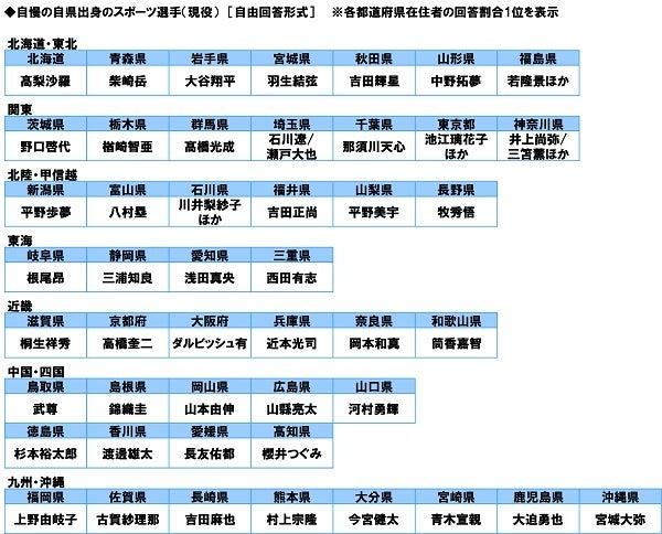 ◆自慢の自県出身のスポーツ選手 岩手県「大谷翔平さん」、宮城県「羽生結弦さん」、