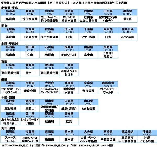 ◆学校の遠足で行った思い出の場所 北海道「藻岩山」、茨城県「筑波山」、