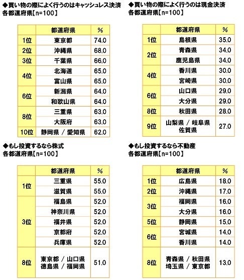 全回答者(4,700名)に、決済方法や投資について聞いた結果から、都道府県ランキングを作成しました。