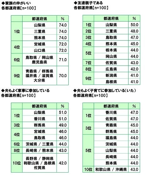 ◆仲良し家族が多い 1位「山梨県」「三重県」「熊本県」、友達親子が多い 1位「山梨県」