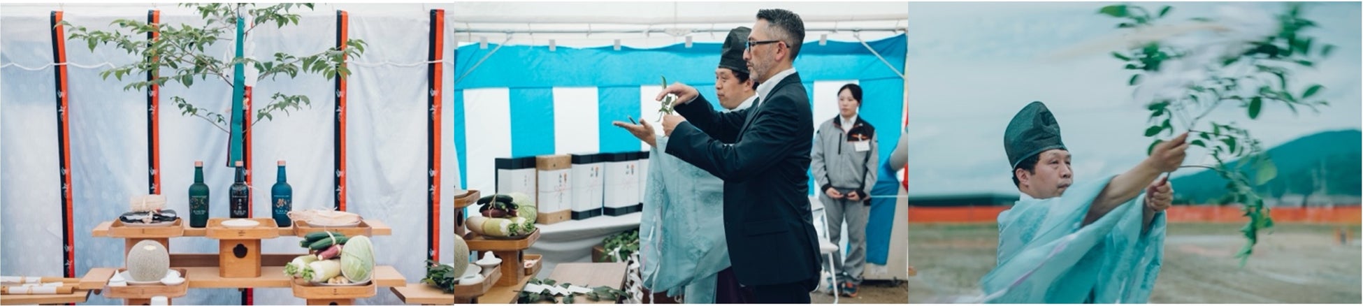 着工を記念する儀式として、建設工事の円滑な進行と蒸溜所の今後の繁栄を祈願し、神社の神主がその土地の神様に祈りを捧げる日本の伝統的な地鎮祭が執り行われました。地鎮祭には、京都蒸溜所の従業員、自治体職員や主な取引先の皆様、そして「季の美 京都ドライジン」のオーナー企業であるペルノ・リカールのブランドカンパニー、The Absolut Groupのオペレーションヴァイスプレジデントであるアナ・スクレールが出席しました。