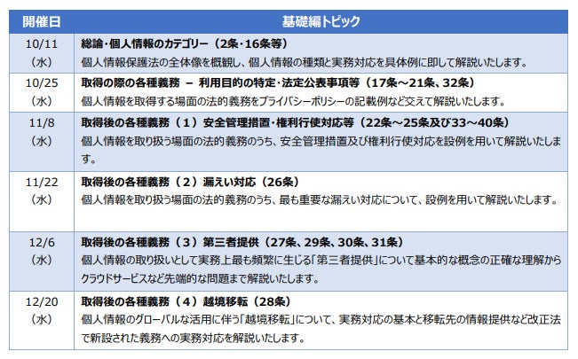 Web セミナー「個人情報保護法の重要テーマ(基礎編)~法規定と実務上の問題を総点検~」の開催が決定