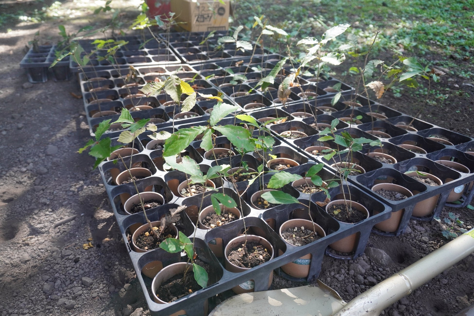 当社では、becoz cardのご利用プログラムでの一環として、初めての森林再生のための移植樹に向け、赤城自然園内で拾ったミズナラなどのどんぐりの実を約半年に渡り大切に育ててまいりました。