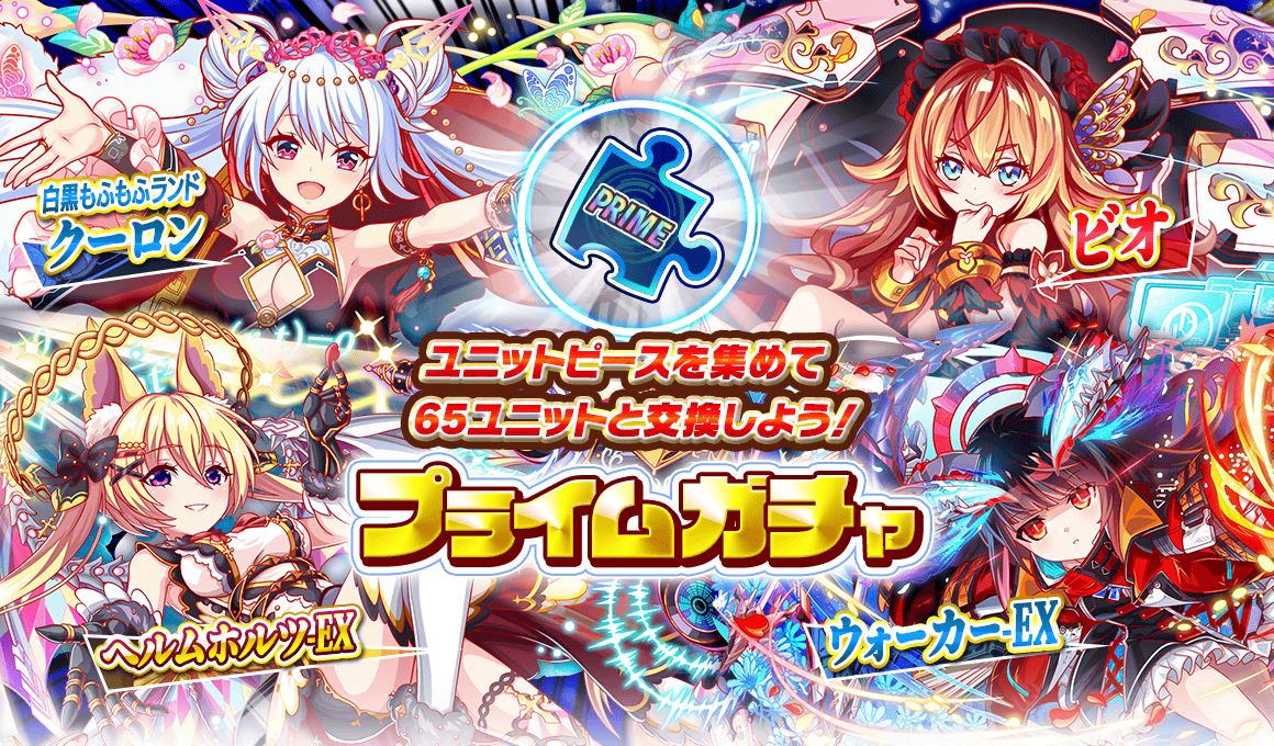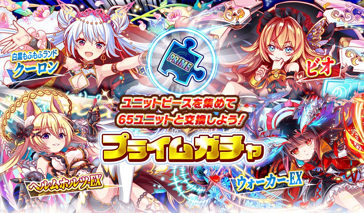 プライムガチャでは、超フィーバーフェスユニット「夜蝙する矯鳴者 ヘルムホルツ」や今までハッピーガチャでのみ入手可能だった「殻球の煽慢者 ビオ」などが排出されます!