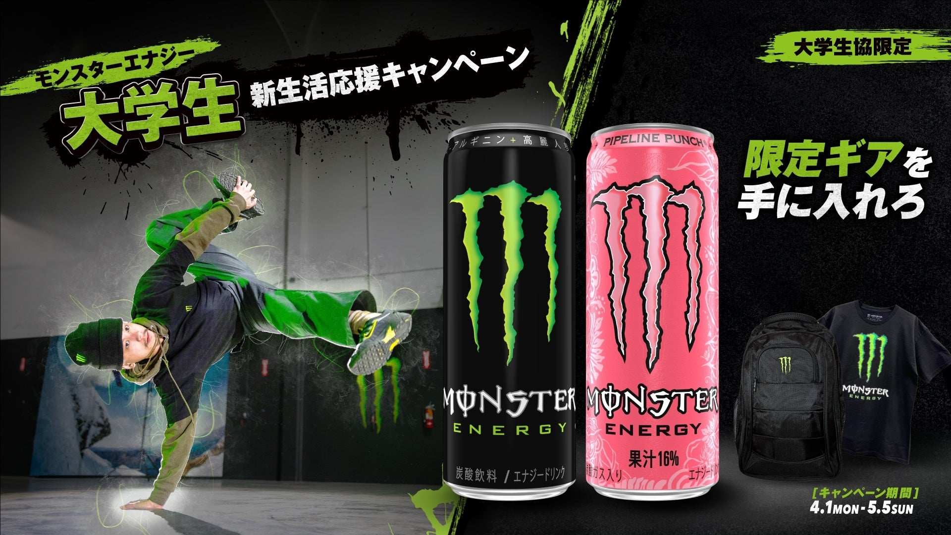 4月から新学期が始まります。大学生には、授業、アルバイト、サークル活動や部活動など忙しい生活が待ち受けています。そんな大学生を応援すべく、モンスターエナジーが大学生協にて「モンスターエナジー 大学生新生活応援キャンペーン」を実施します。