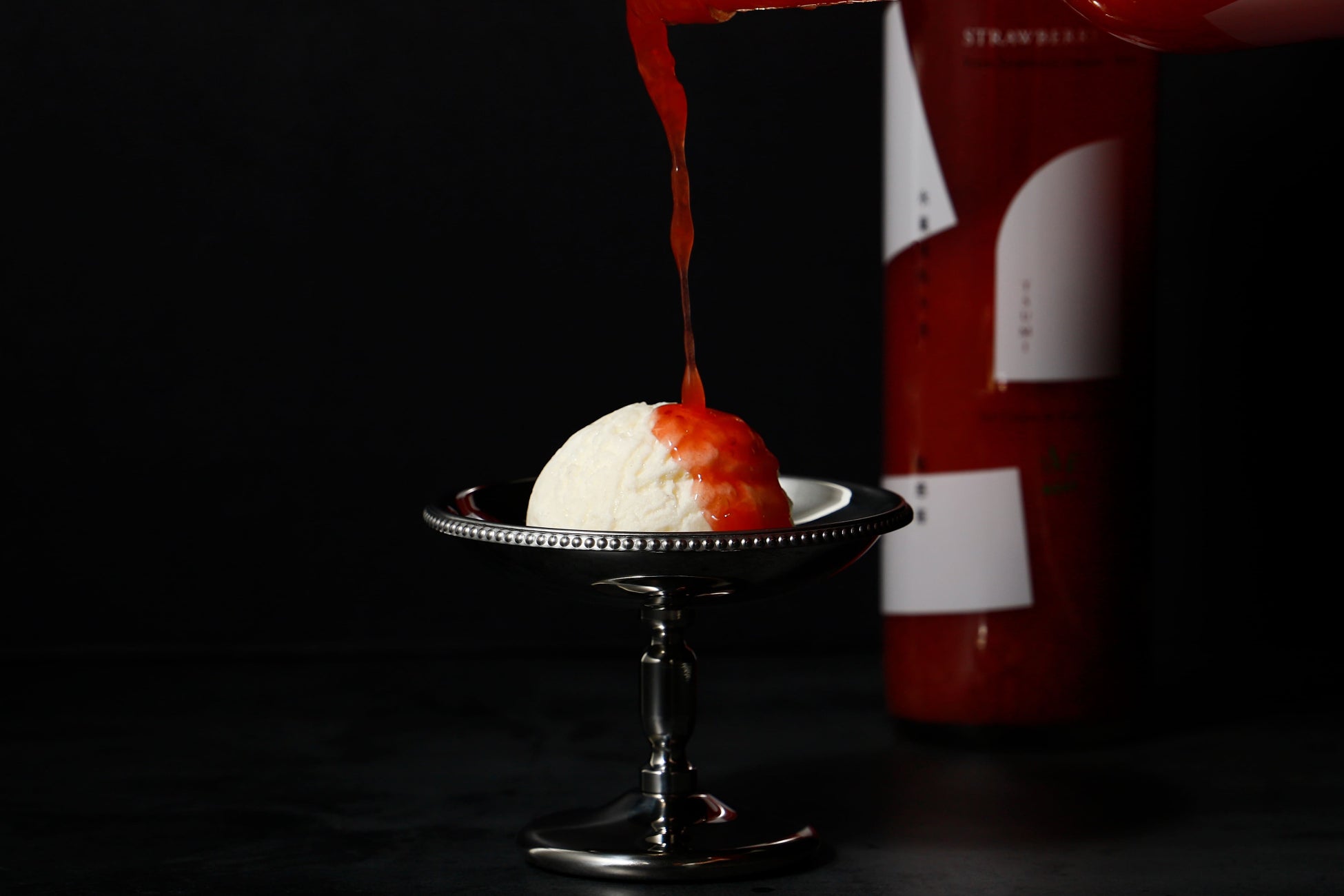 とろりと濃厚なテクスチャーが特徴の「罪-TSUMI-」は、アイスクリームにかけるために開発された果実酒ですが、アイスクリームにかける以外にも、様々なアレンジでお楽しみいただけます。
