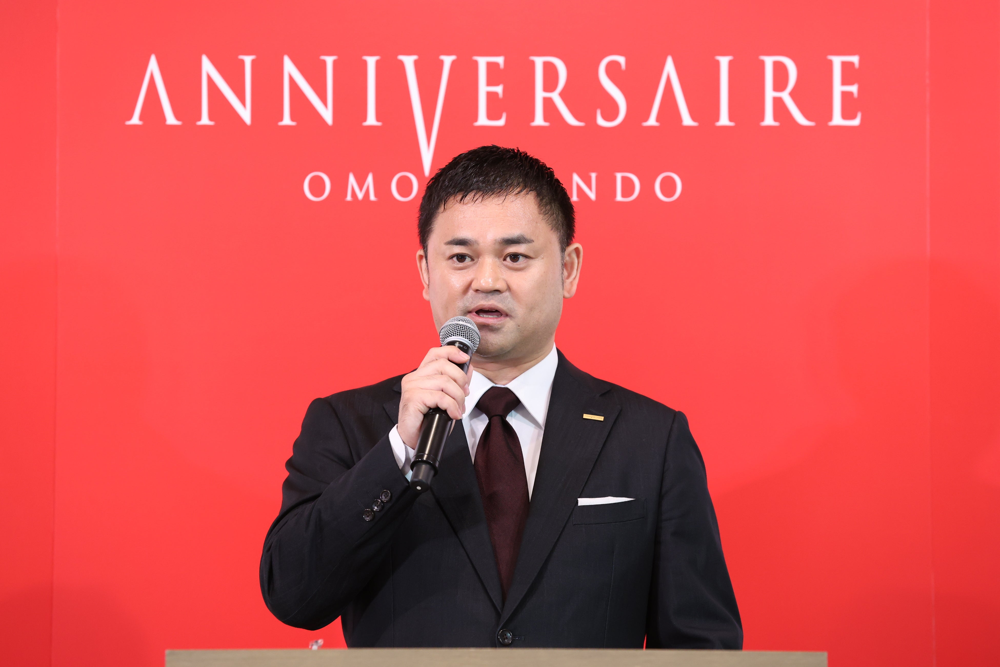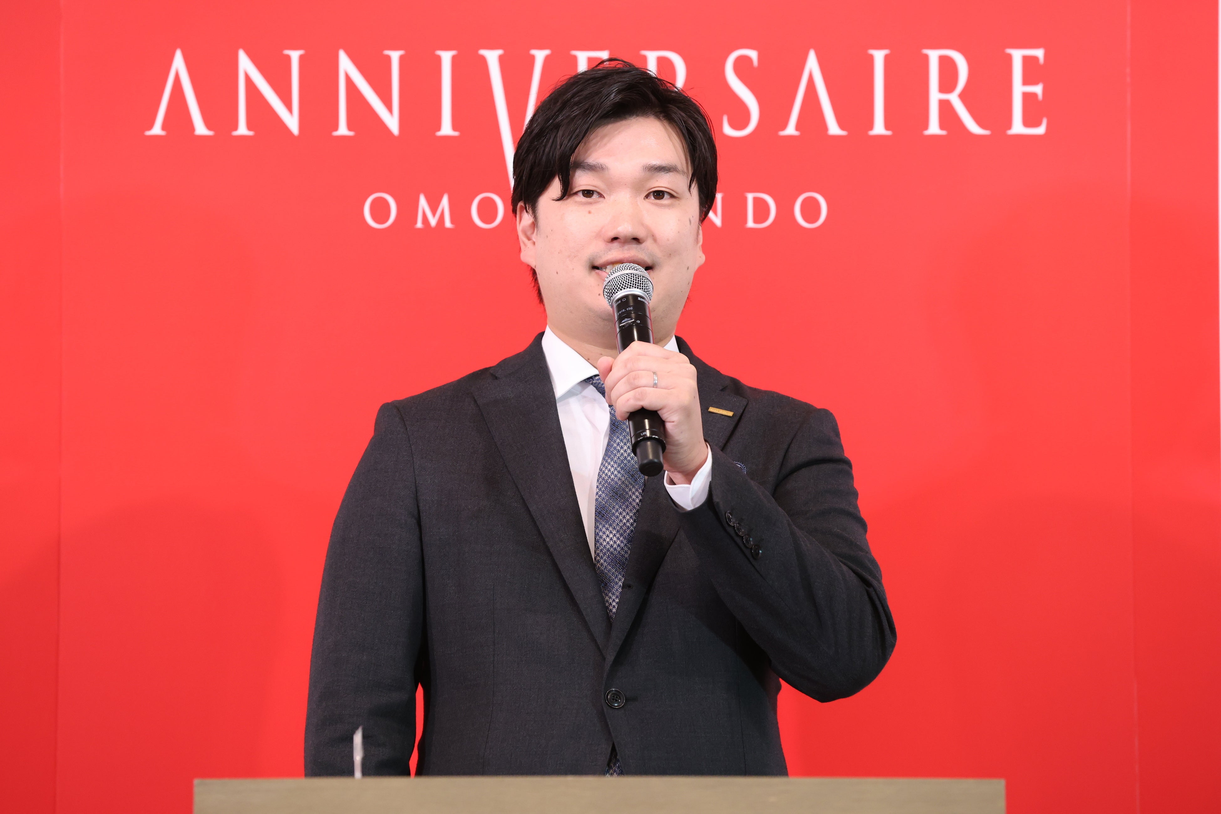 続いて、アニヴェルセル 表参道 総支配人 村上暁誠が登壇し、コンセプトについて「『TOKI MAKE~大切な人との時をつくる記念日の館~』。 “日常をハレの日にする”、“大切な日を忘れることのできない最幸の時間にする” ご来館される方々の人生の節目となるようなシーンはもちろん、何気ない一日やふとした日常も “記念日のように”ラグジュアリーなトキを楽しんでいただきたい」と語りました。