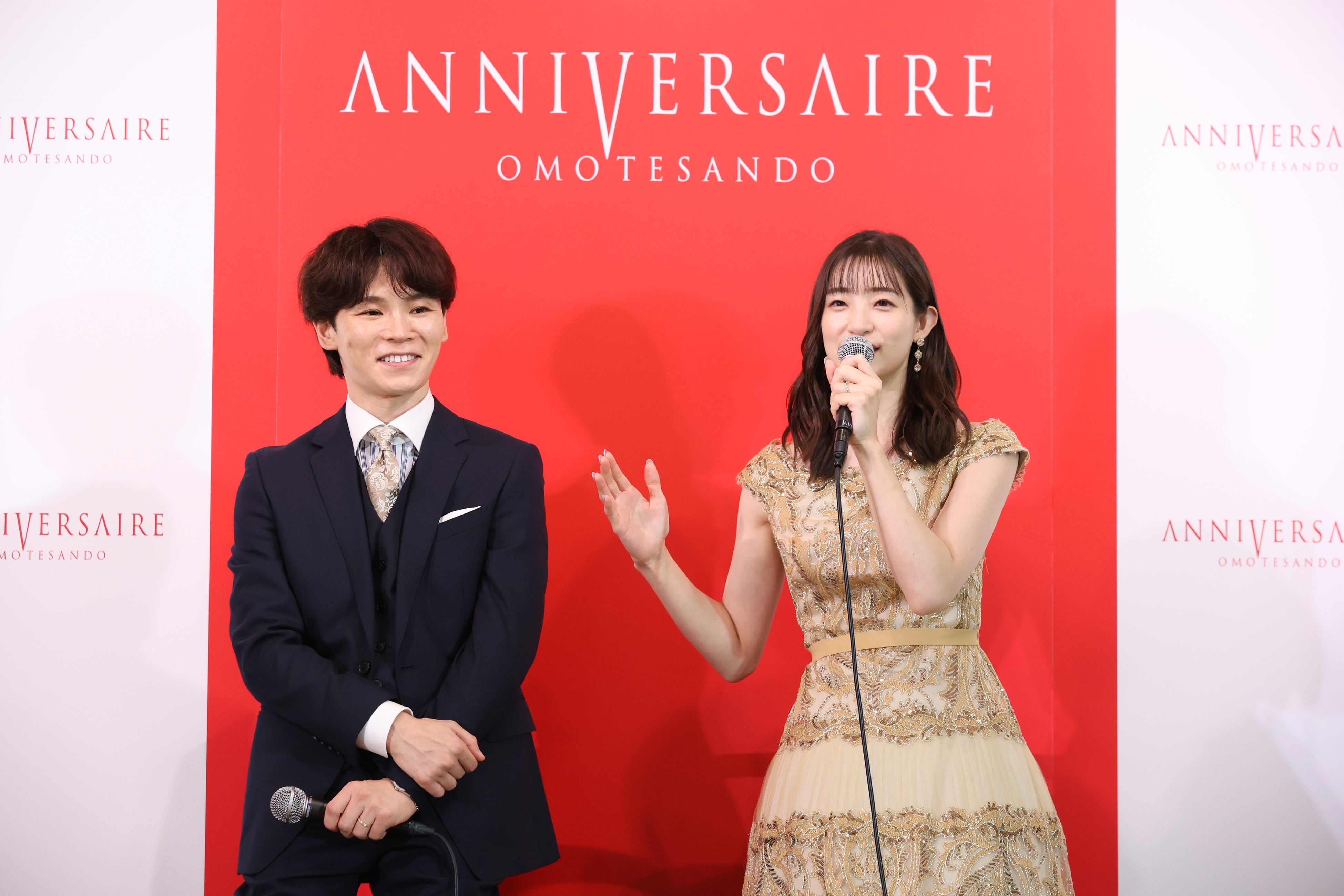 今年で25周年コンセプトは「記念日の館」 アニヴェルセル 表参道リニューアルオープン発表会 6月に婚約発表をした足立梨花さんと夫のTATSUさんが登壇