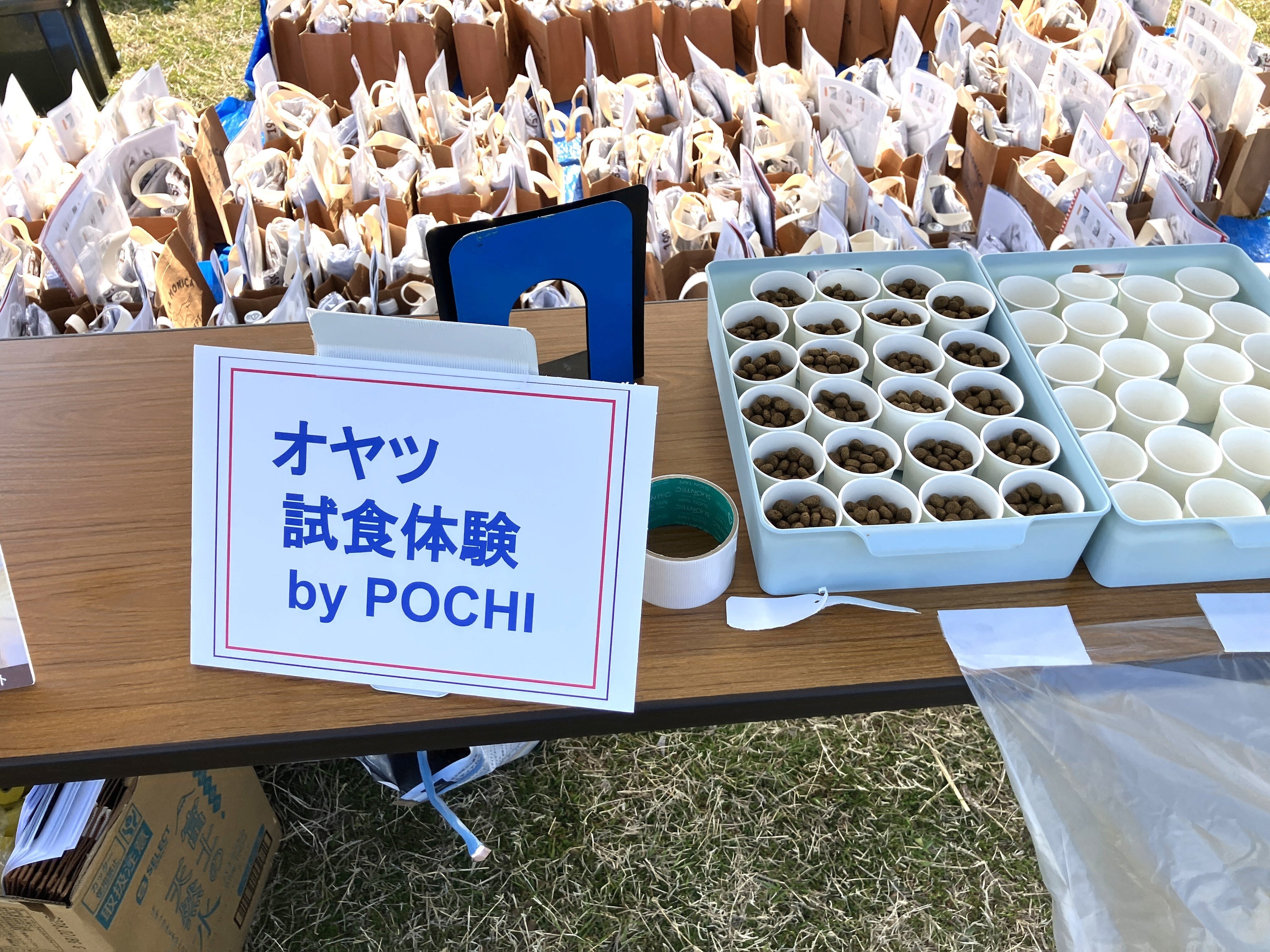 また、POCHIのフードが試食できるコーナーをご用意。「鮪ビッツ」や「ココナッツオイルの満腹クッキー」など、POCHI自慢のオヤツをお楽しみいただきました。