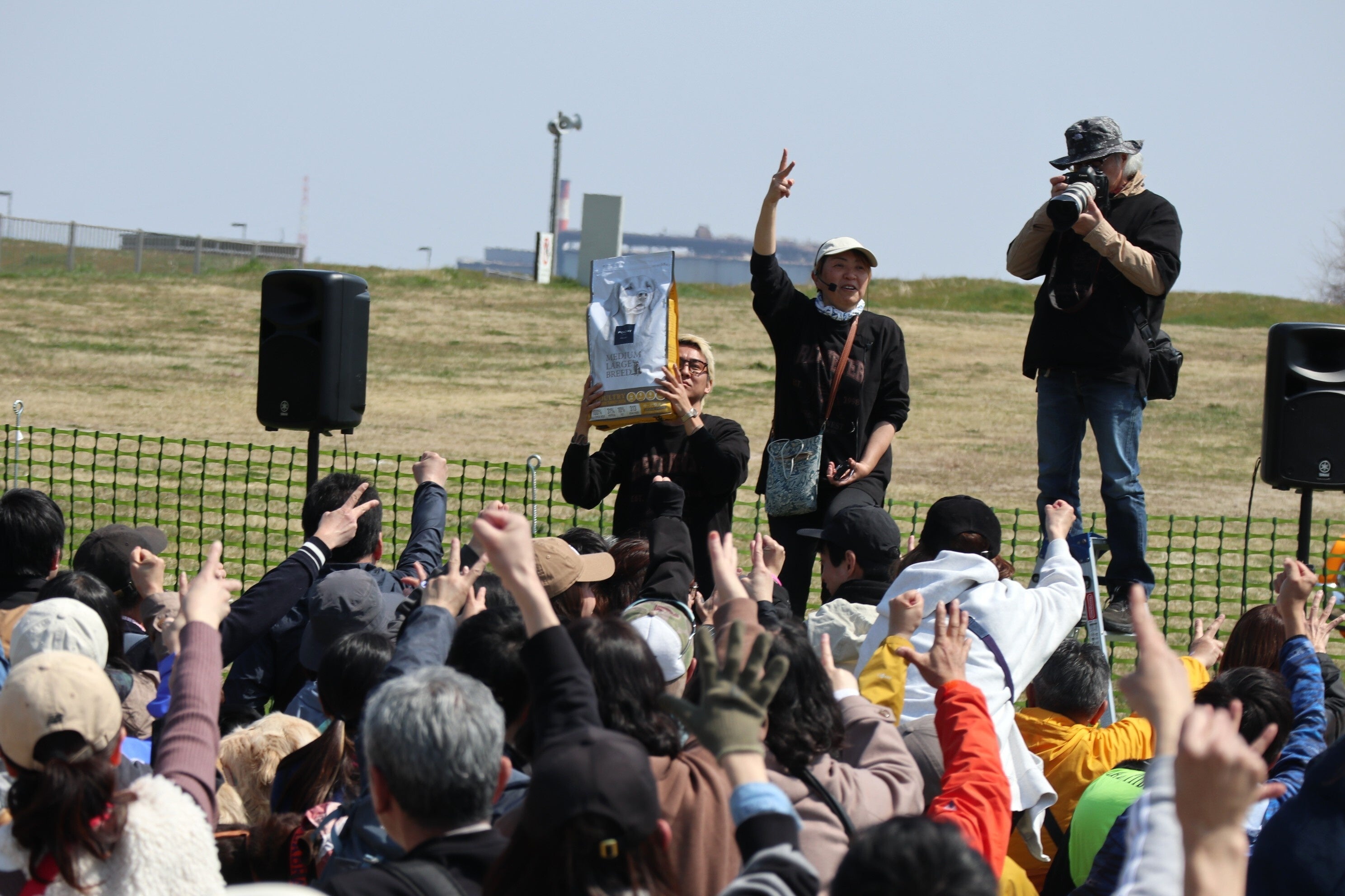 イベント当日は晴天に恵まれ、晴れやかな青空の下、306名、208頭が一同に集まり大盛況でした。POCHIでは、来場者全員に『RETRIEVER』と共同開発を進めてきた、中・大型犬用の総合栄養食『POCHI ミディアムラージブリード 3種のポルトリー』がお得に試せるクーポンを配布したほか、ゲームの賞品として『POCHI ミディアムラージブリード 3種のポルトリー』1.8kgサイズ5袋と5.8キロサイズ5袋を提供しました。