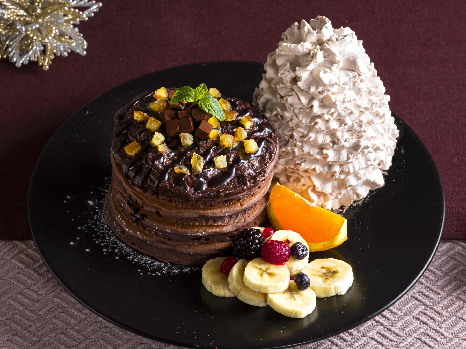 とろりと濃厚なガナッシュがあふれるチョコレートパンケーキに、