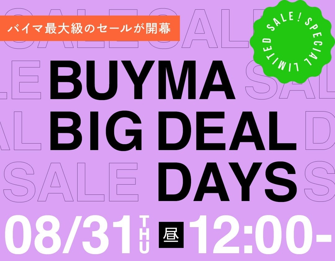 8月31日(木)昼12:00から9月3⽇(⽇)23:59までの4⽇間限定で実施する、バイマ最⼤級のビッグセール『BUYMA BIG DEAL DAYS』の概要を公開いたします。