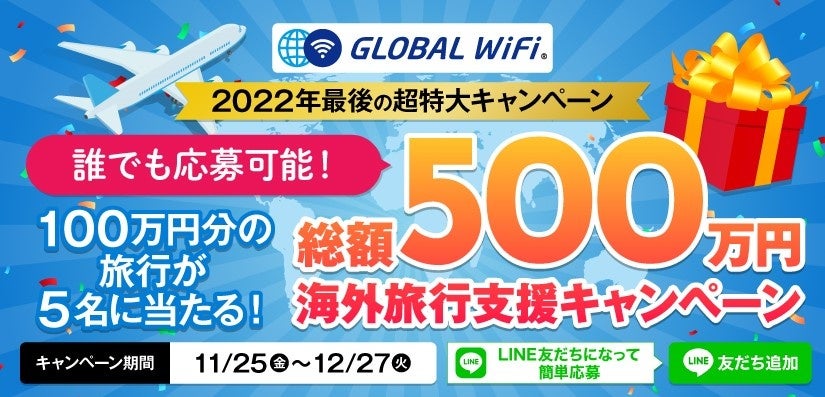 「グローバルWiFi®」100万円の旅が5名様に当たる『海外旅行支援キャンペーン』を実施