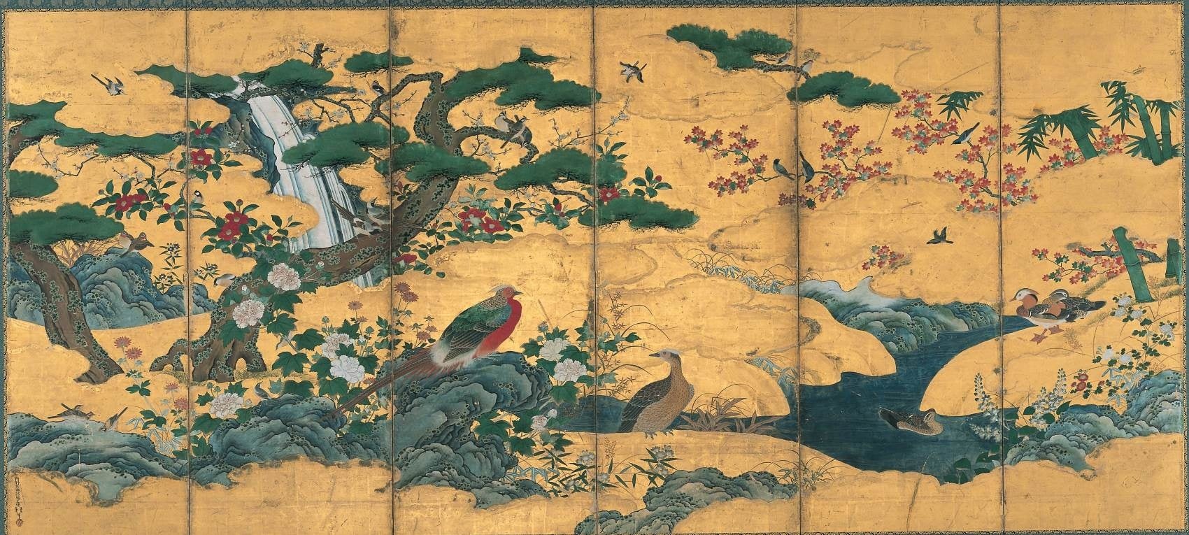 嘉納治兵衛は、奈良、興福寺に縁のある中村家に生まれ、幼少より古美術に親しんで育ちました。今回の展示品のうち、興福寺伝来2件の「四季花鳥図屏風」(展示替あり)は、幼少期に目にしていた絵画です。教職につき、後に漢学者を目指した京都での修学期を経て、明治20(1888)年、酒造業を営む灘の嘉納家(白鶴)に婿入りします。