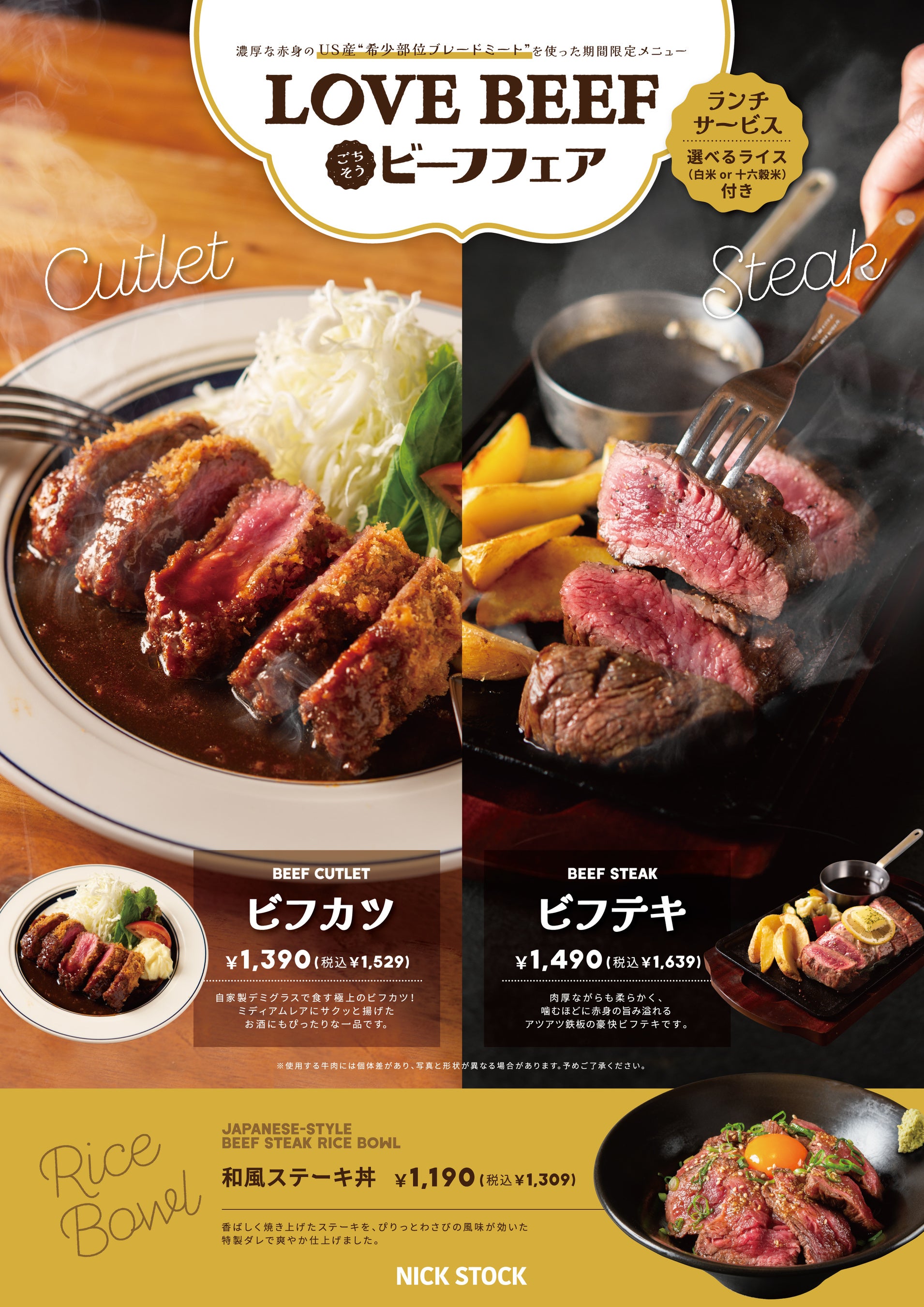 【ニックストック】食欲の秋到来!“希少部位”ブレードミートを使用した『ごちそうBEEFフェア』開催!珠玉の「ビフカツ・ビフテキ」を期間限定で提供開始!