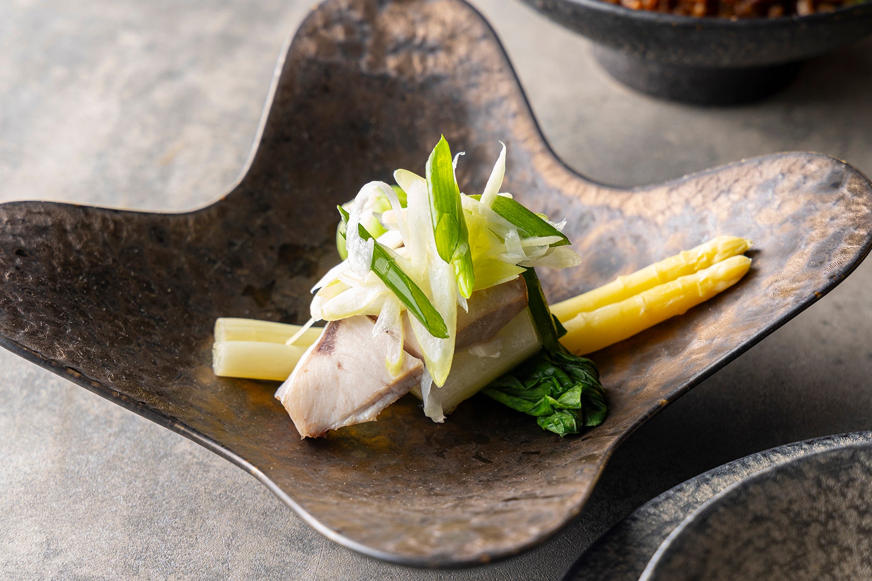 四国・中国地方の豊かな特産物をふんだんに使ったランチ・ディナーコースでは、旬の魚介や野菜を王道の中国料理にモダンなエッセンスで仕上げ、安藤ならではのクリエイティブな味わいをお楽しみいただけます。前菜から飲茶、メイン、デザートまで、香川のオリーブ牛や徳島の阿波尾鶏、島根の宍道湖しじみなど、各地の旬食材が彩り豊かに登場します。