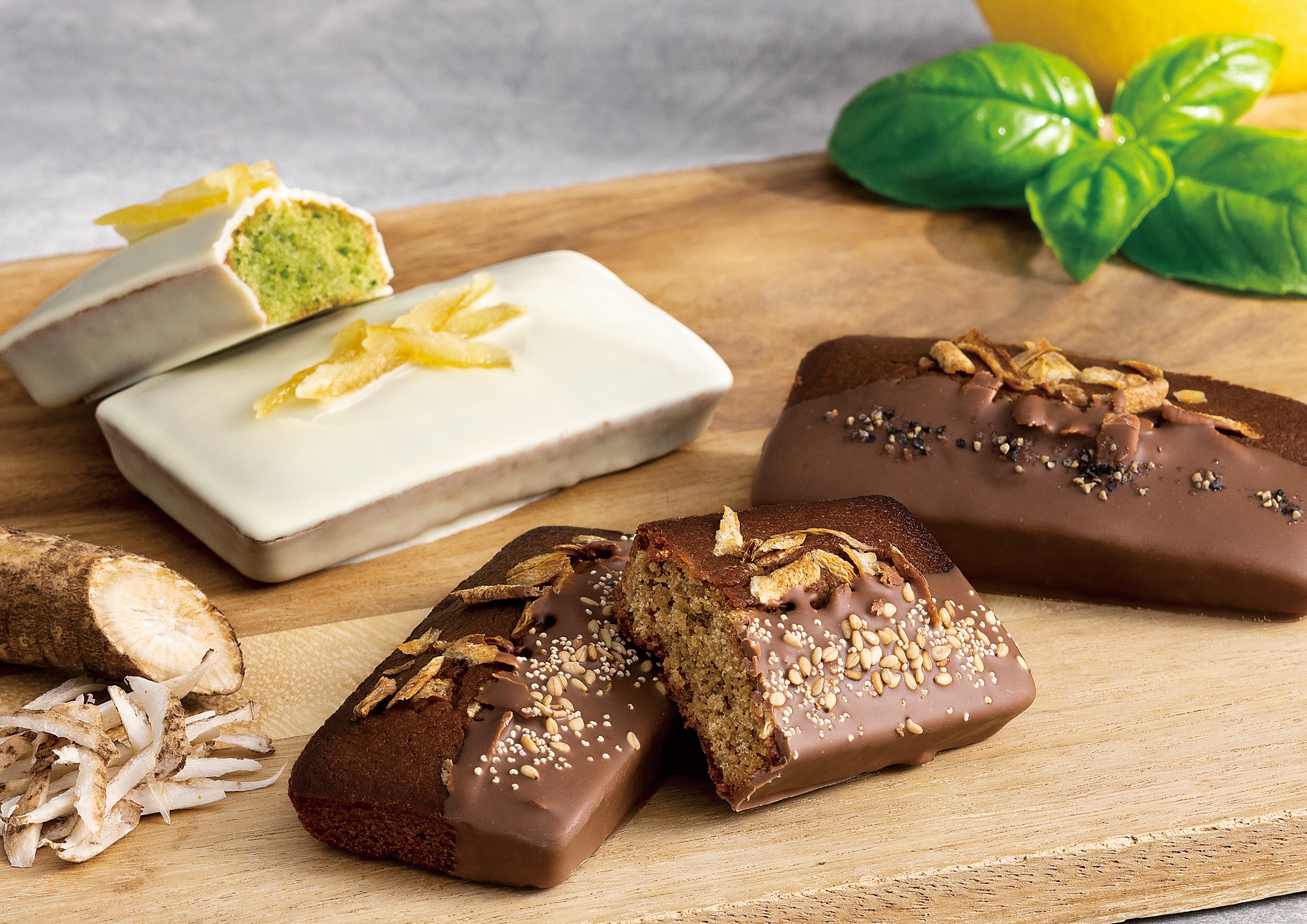 国産ごぼうパウダー(※1)をふんだんに使用した香ばしいフィナンシェにごぼうのささがきをのせて、さっくり焼き上げた 『香ばしごぼうフィナンシェ 白煎り胡麻&ミルクチョコレート』、『香ばしごぼうフィナンシェ 黒胡椒&ミルクチョコレート』。そして、ベルギー産発酵バター(※2)を使用した、国産バジル(※3)香るふんわり食感のフィナンシェに、甘酸っぱい レモンチョコレートをコーティングした『爽やかバジルレモンフィナンシェ レモンピール&レモンチョコレート』には、 フレッシュな香りとやさしい苦みがアクセントの愛媛県産レモンピールをのせて、初夏にふさわしい爽やかな味わいに 仕上げました。