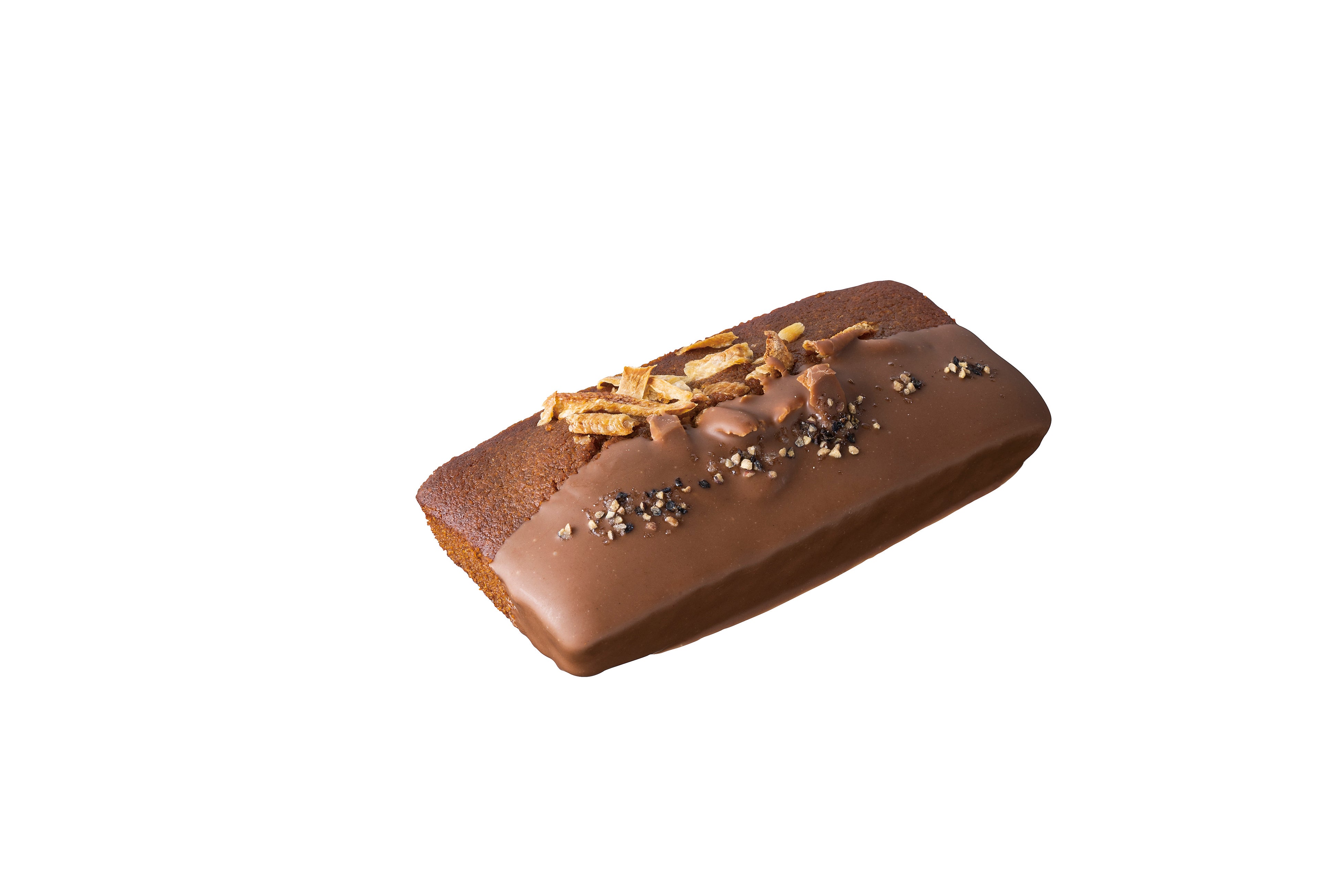国産ごぼうパウダー(※1)をふんだんに使用した香ばしいフィナンシェにごぼうのささがきをのせて、さっくり焼き上げました。ほんのりキャラメル風味のミルクチョコレートを半分 コーティングし、黒胡椒とゲランドの塩をトッピング。心地よい刺激が楽しめる、大人な味わいです。